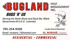 Locally owned and operated, Bugland Pest Management serves residents in the Algoma Region including Sudbury, Echo Bay, St. Joesph Island, Richards Landing, Bruce Mines, Thessalon, Blind River, Elliot Lake, Manitoulin Island, Espanola, Levesque, Garson, Falcon Bridge, Sturgeon Falls, and Spanish. We provide necessary services to eliminate pests such as ants, wasps, and the seasonal bed bugs. Our strict standards for pest elimination also ensure the safety of your home as our products are advanced and geared towards environmental initiatives. It is our goal to provide our customers with the attention they deserve with outstanding service and reliability.